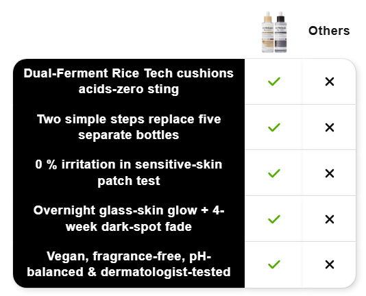 pH-balanced at 3.8; acids ≤10 %(home-use safe) Fragrance-calmed; no parabens, no drying alcohol, no hydroquinone